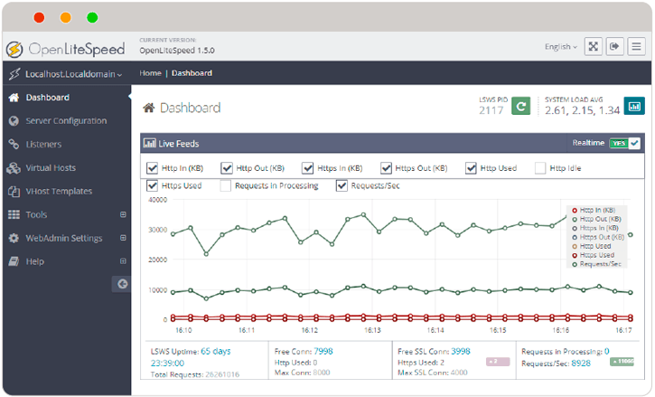 olarak baktığınızda litespeed in 7080 portunda çalıştığını görebilirsiniz port dışarıya açık değilse kullandığınız firewall üzerinden 7080 portunu açın ve http://ipadresi:7080 olarak panele giriş yapabilirsiniz.