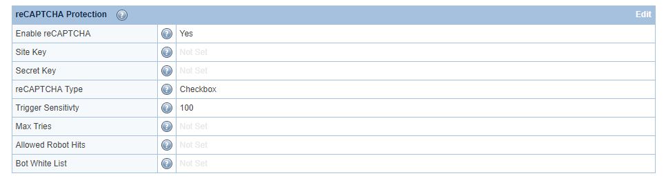 Ardından: Configuration > Virtual Hosts > Security > reCAPTCHA Protection
