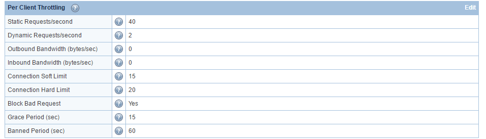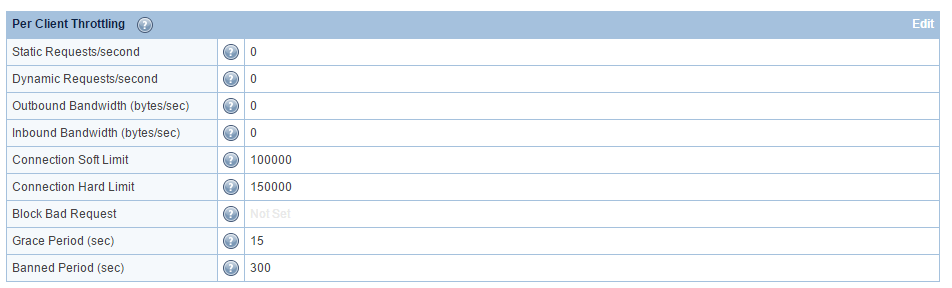Paneldeki dizin: Configuration > Server > Security configurations > Per Client Throttling